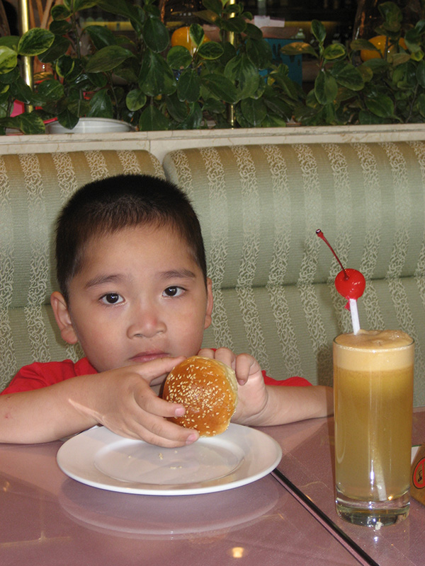 It was time for lunch, so we went down to the hotel restaurant for lunch. We ordered and waited... and waited. They brought Tyler a roll shortly after we came in to eat while our food was cooking. Tyler is used to taking a nap in the middle of the day, so he was tired by now, since we were a little late eating lunch. He fell asleep waiting on for our lunch, but woke up again once we got our food. We found out that he likes french fries... as most kids do. :) He ate very well again. After lunch, we started to wonder if he was taught that he has to eat everything on his plate, because he seemed to be really full and one of the times near the end of lunch that mom put a few more french fries on his plate, he acted like 'oh, not more.' He was quick to shake his head no when we offered him more after that. We don't want to force him to eat too much, but we don't want him to go hungry either. Now that we think that he may think he has to eat everything on his plate, we're going to be more careful about how much we give him.
