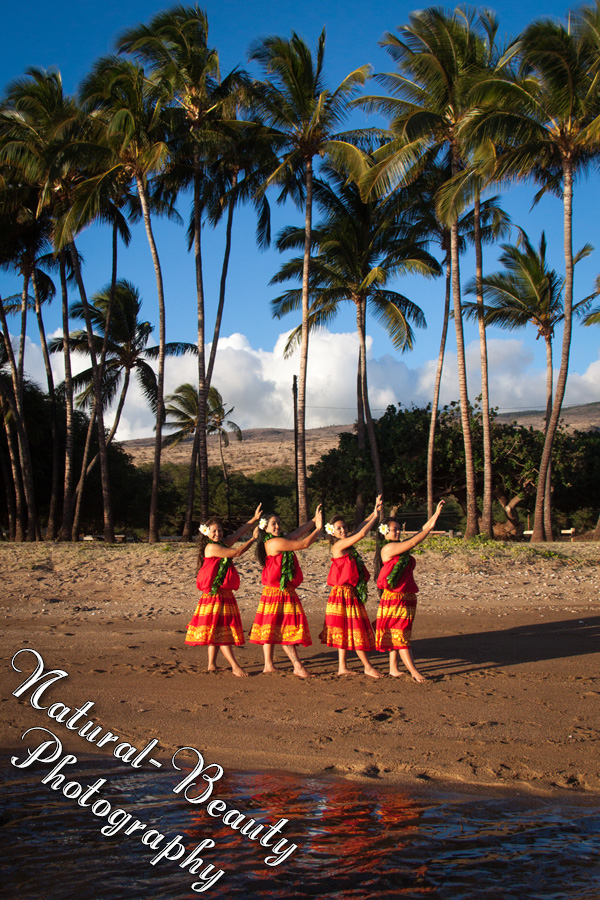 a few coconut trees right by the beach. It's a beautiful setting for these hula pictures. Three of the dancers did a couple hula dances for us in front of 4 trees right in front of the ocean. Beautiful pictures, both pulled back where you could see the trees or close up where you could just see the ocean behind them. They then moved to another location with more trees as a background and all four of them did a couple more dances. It was a little windy and, although I think it annoyed them a bit with their hair getting in their faces a lot, it made for some great pictures.