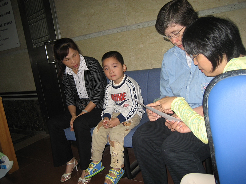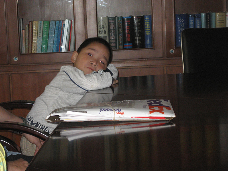 After the CAB, we had to go to the notary public to have the paperwork notarized. While we were here we started talking with another family who was adopting from this orphanage. We had seen them yesterday when we were picking Tyler up, they were also picking up their baby girl. We had also seen them in the hotel, they're just a few doors down from us, and again at the CAB today. We talked to them and found out that they are from Spain. Their second language is English and their guide didn't know spanish, so they were trying to communicate with their second language to their guide using her second language. It worked fine most of the time, but we helped interpret when we could. They seem like a really nice family as well. At the hotel, we also met someone who adopted a 2 or 3 year old girl about a week ago who is from Washington State. She had assured us that it gets better quickly. They were actually leaving for Guangzhou today. While we were talking at the notary, Tyler fell asleep laying his head on the table, but with just a touch, he was awake again.