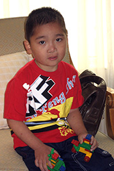 When we got back from Walmart, we showed Tyler his new toys. I built him some vehicles out of his legos. He watched me making them and then took them from me when I offered them to him. A couple of them had windmill type pieces on them that he liked to spin. We decided to try giving Tyler a bath again, and he accepted it much better this time, he didn't cry at all.... don't know that he liked it, but he didn't fuss about it. After his bath, Amy came in to get our laundry to send out. While mom was talking with Amy, I tried to play catch with him with his ball. He held it at first, but then tossed it to me. We played catch together for several minutes. Another breakthrough as far I was concerned... he actually was playing 'with' us.