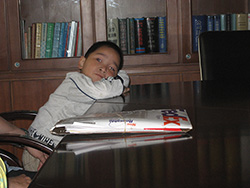 We all woke up around 5:00am this morning, including Tyler. It has been less than 24 hours since we picked Tyler up at the CAB. He is doing so much better already, he isn't crying hardly at all unless we do something to provoke it, such as trying to give him a bath. At the orphanage, we think that he always had sponge baths, but we aren't sure. Mom tried running some bath water for him, but he didn't want anything to do with that. She tried a couple times, but didn't want to push him too hard yet, so when he really didn't want to take a bath, she settled for a sponge bath, and he was ok with that.