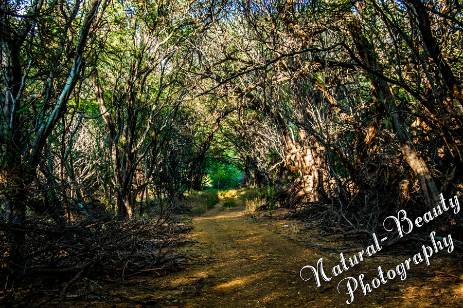 When we were going out to Halawa Valley, I had noticed a yellow field with a bunch of dead trees in it and a thicket of live trees behind it with the mountains as a backdrop. I thought it looked really neat. Rikki decided to stop here on our way back and one of the other students and I went with him over the gate and back into the thicket. Rikki knew of some old dead cars back along a fence line in the thicket somewhere that he was looking for. Just as we got into the thicket a little ways, I saw a pathway I thought looked neat, so I moved over a bit to