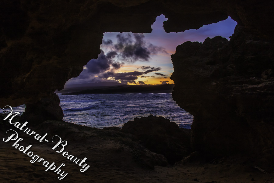 Beach and the roads were impassable. I'm so glad that we got to go. The waves were coming in rhythmically. The cloudy sky added more interest. This one beach had several different areas with totally different looks to take pictures. As I was climbing around on the top of some rocks, Rikki told me there was a cave right underneath. The view out of the cave was astounding. I got pictures from the cave, on the soft, sandy beach, over the cliff and over the rocks with the water splashing up on them.